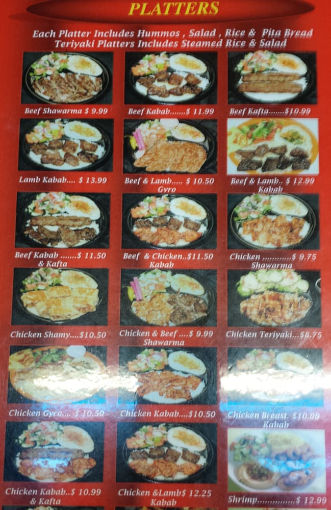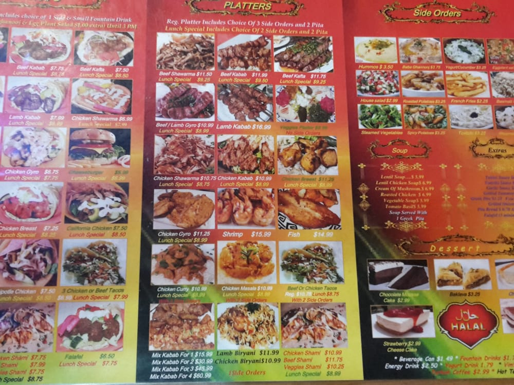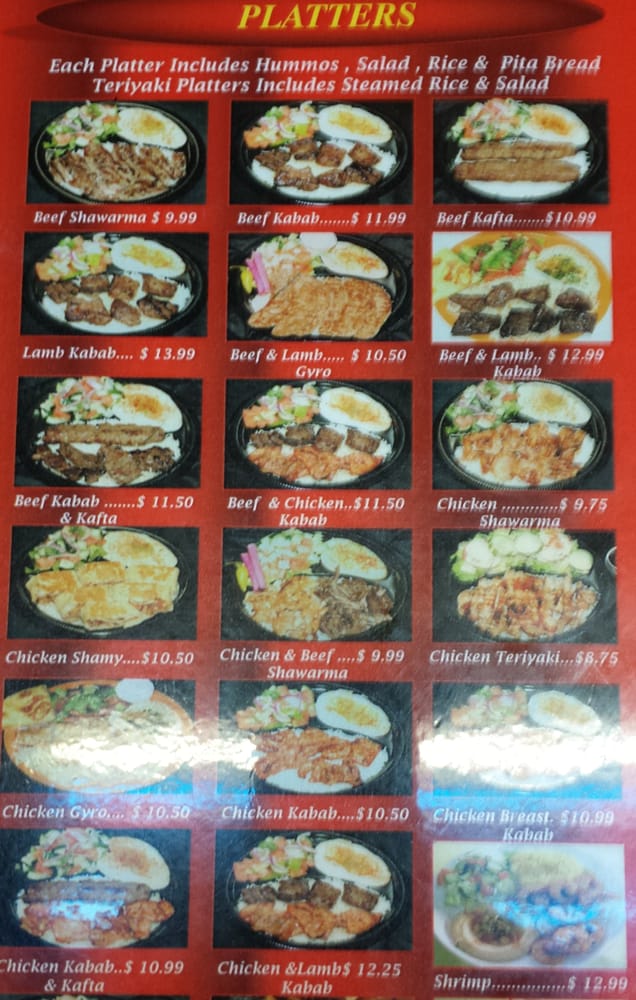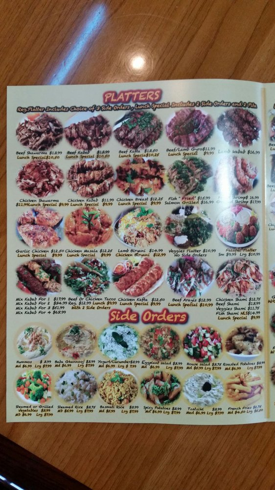 Includes rice, veggies, your choice of side and 2 pita breads.
