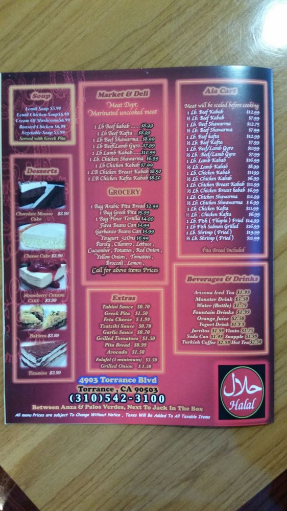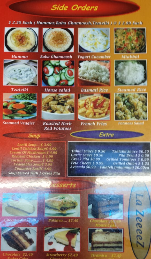 Introducing the menu of La Zeez Pita Grill, a hidden gem located at 1650 Sepulveda Blvd, Harbor City, CA. This charming eatery specializes in Middle Eastern and Mediterranean flavors that tantalize the palate. The menu boasts an array of dishes, including the popular Fatoosh Salad with grilled chicken for $17.99 and savory Samosas for $5.75. Vegetarian options like Falafel Salad stand out, showcasing the restaurant's commitment to fresh ingredients and vibrant spices.